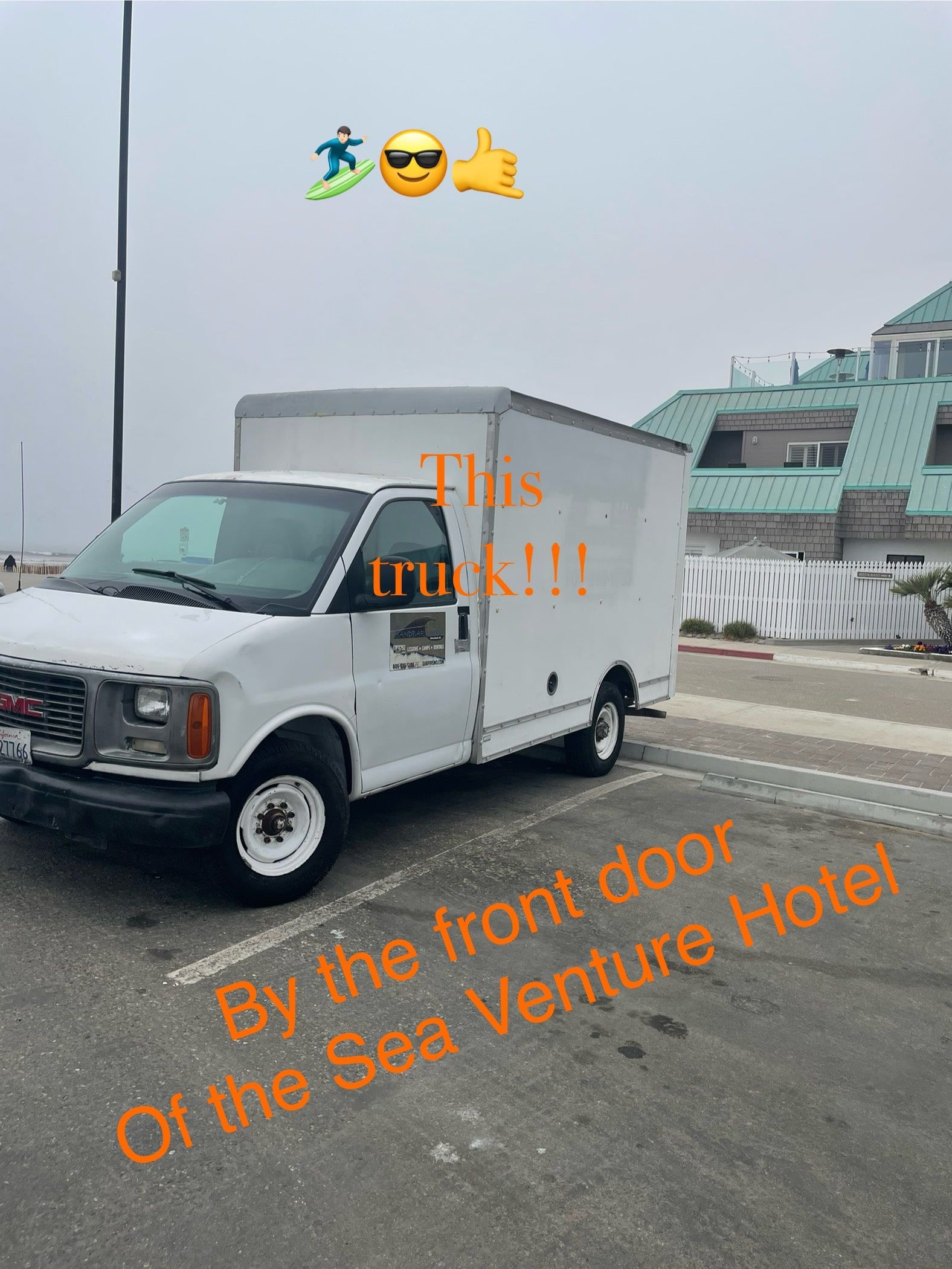 Students meet their instructor 15 minutes prior to the start of the class by the front door of the Sea Venture Hotel in the beach parking lot at 110 Park Avenue in Pismo Beach. Look for the BIG White Box Truck, that’s us! You’ll most likely see us unpacking surfboards from the truck for your lesson and jamming out to some music.