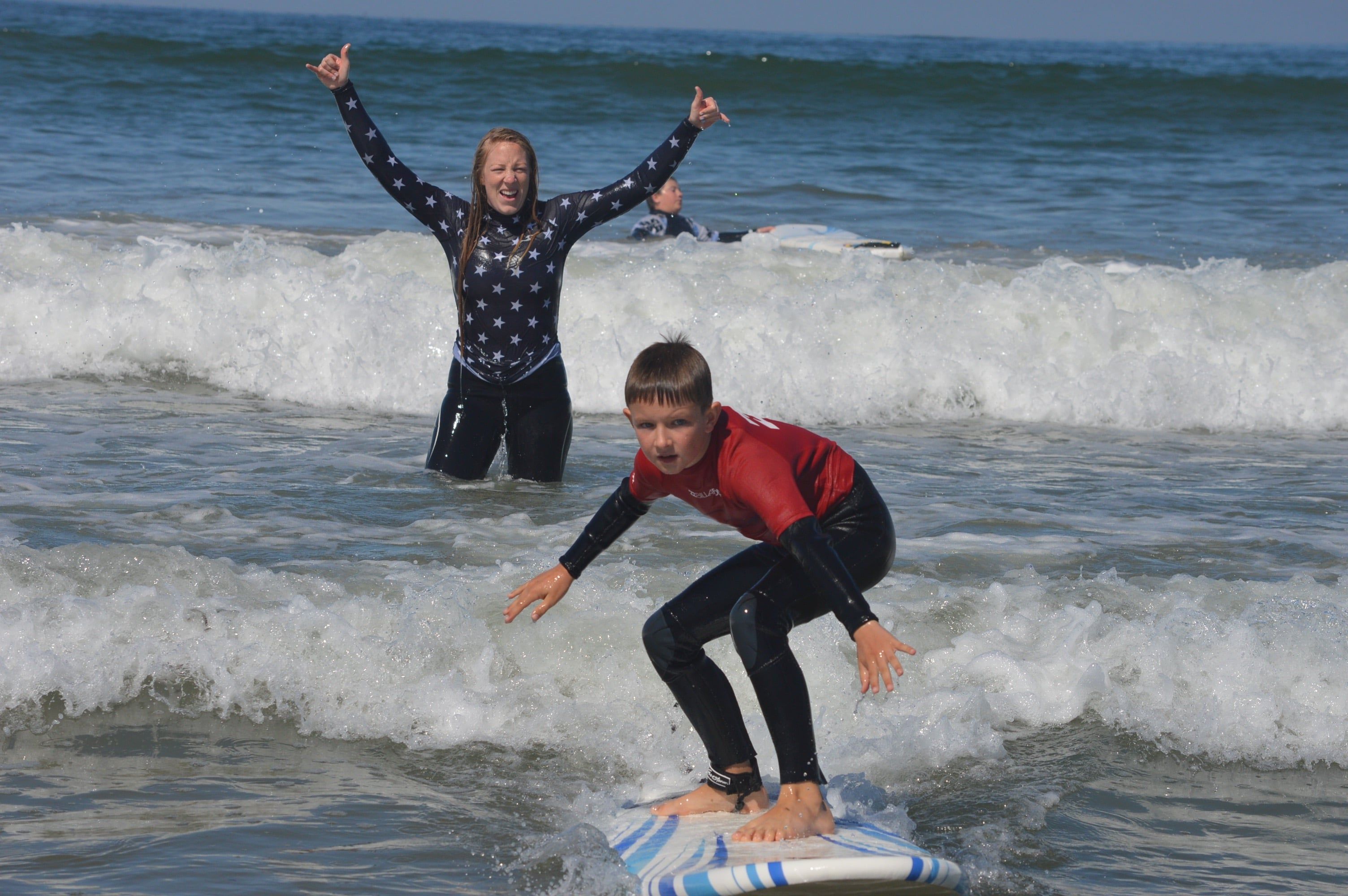 This is our extended surf lesson where you get a longer surf session than your traditional “one session” surf session.We see parents do this as a daily surf camp they don’t have to commit all week to. Maybe 2 days is all you’ve got? This IS a surf session though. We don’t do sandcastles. We don’t do hula hoop. We surf. So if that’s what you and your kids are into is surfing, that’s us. Sandcastle building is some other thing, not us. We surf and then we surf more.